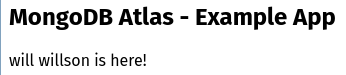 This route will insert a user with a first and lastname into the MongoDB. For the example of will willson we combine the returned IP of the terraform script with the route like this